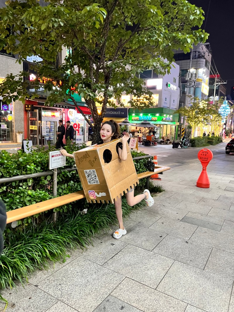2023년 10월, 인터넷 커뮤니티에서는 압구정 거리에서 밤에 박스로 몸을 가린 뒤 길을 걸어다니며, 지나가는 사람들에게 아무런 조건 없이 본인의 가슴을 만질 수 있도록 해주는 엔젤 박스녀라는 사람이 나타났다는 소식이 화제였습니다.